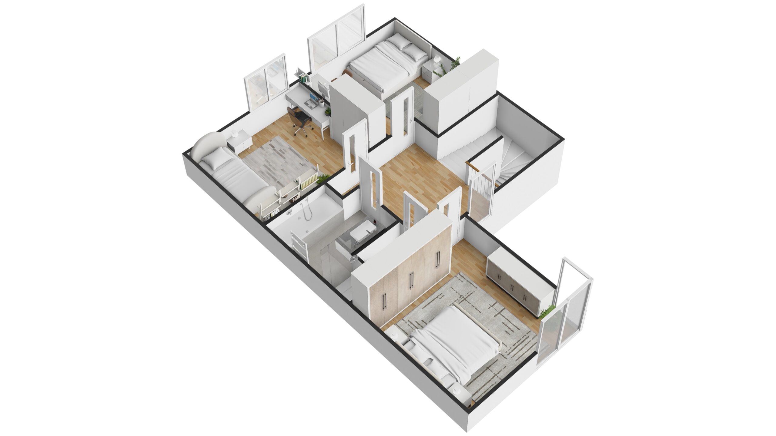 Hlavní obytná část v 1. NP je orientována na jihozápad, což zajišťuje optimální světelné zisky v odpoledních a podvečerních hodinách. Z obývacího pokoje je přístup na terasu a zahradu. Ložnice a jeden z dětských pokojů v patře jsou rovněž orientovány na jihozápadní stranu směrem do zahrady. Garáž před domem umožňuje stání 2 osobních automobilů.