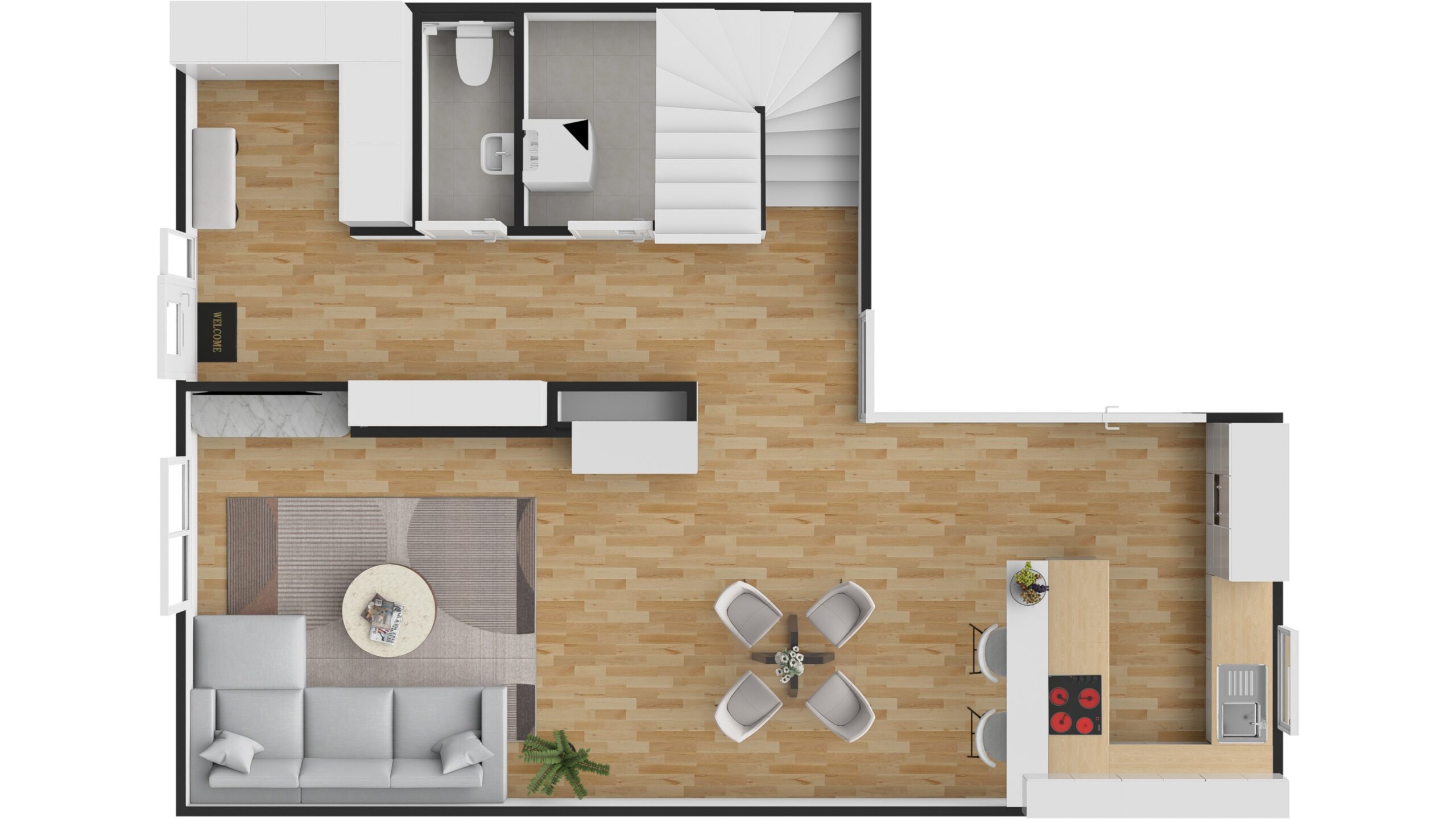 Dodání na klíč včetně kuchyňské linky. Budoucí majitel má možnost individuálního výběru dekoru a tvarového řešení linky u smluvního truhláře, který zajišťuje výrobu i instalaci.