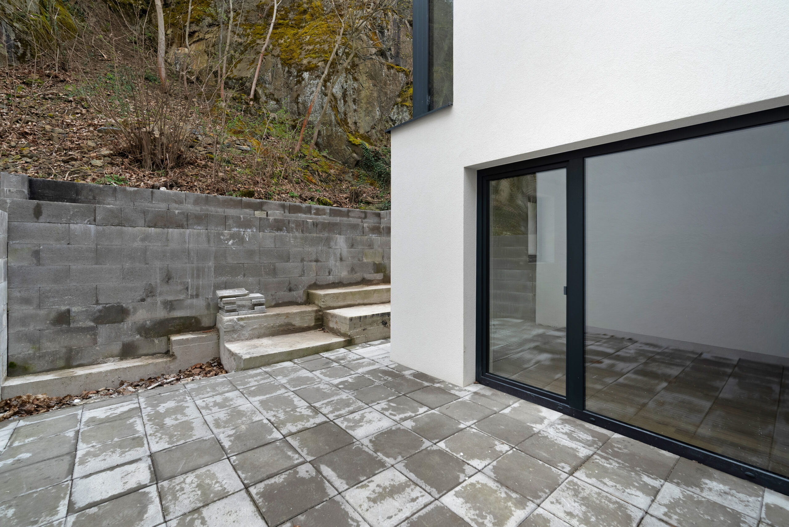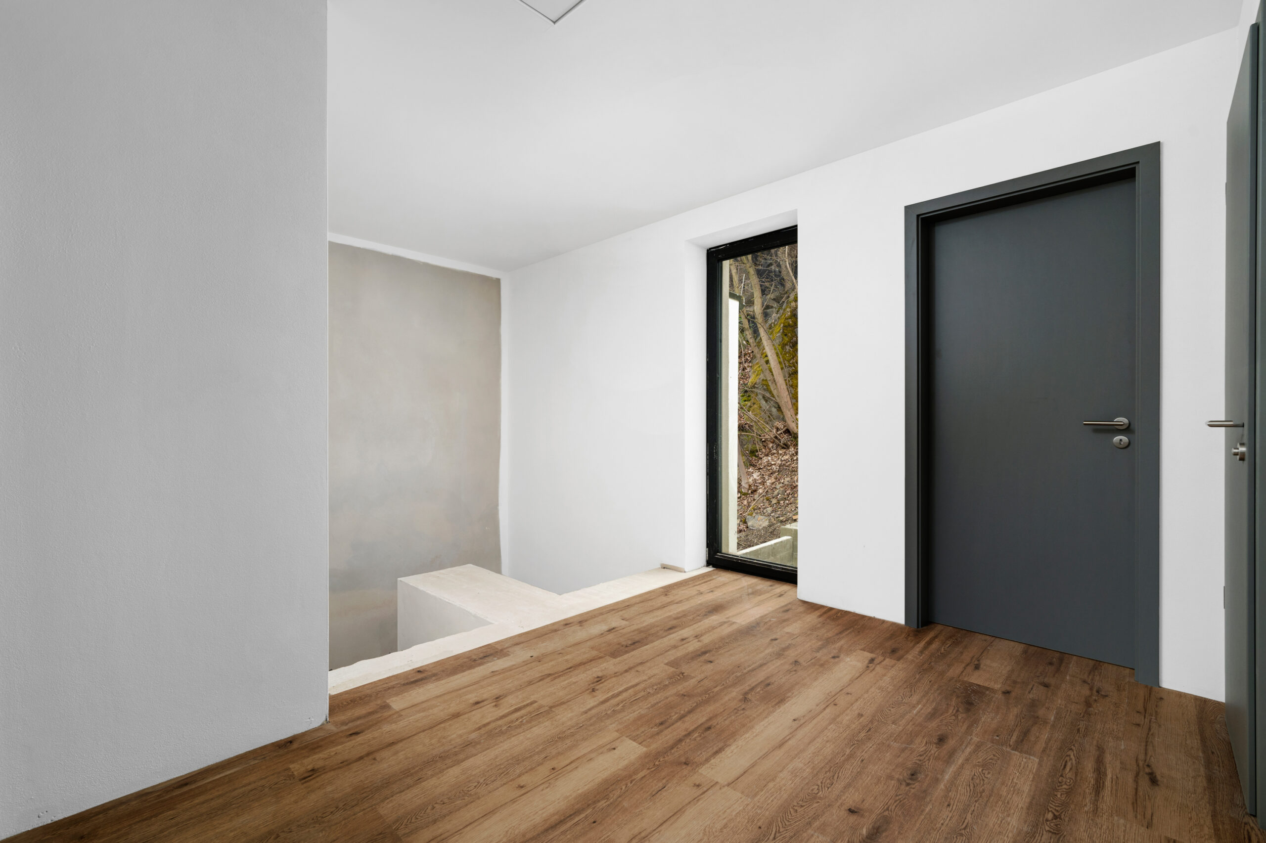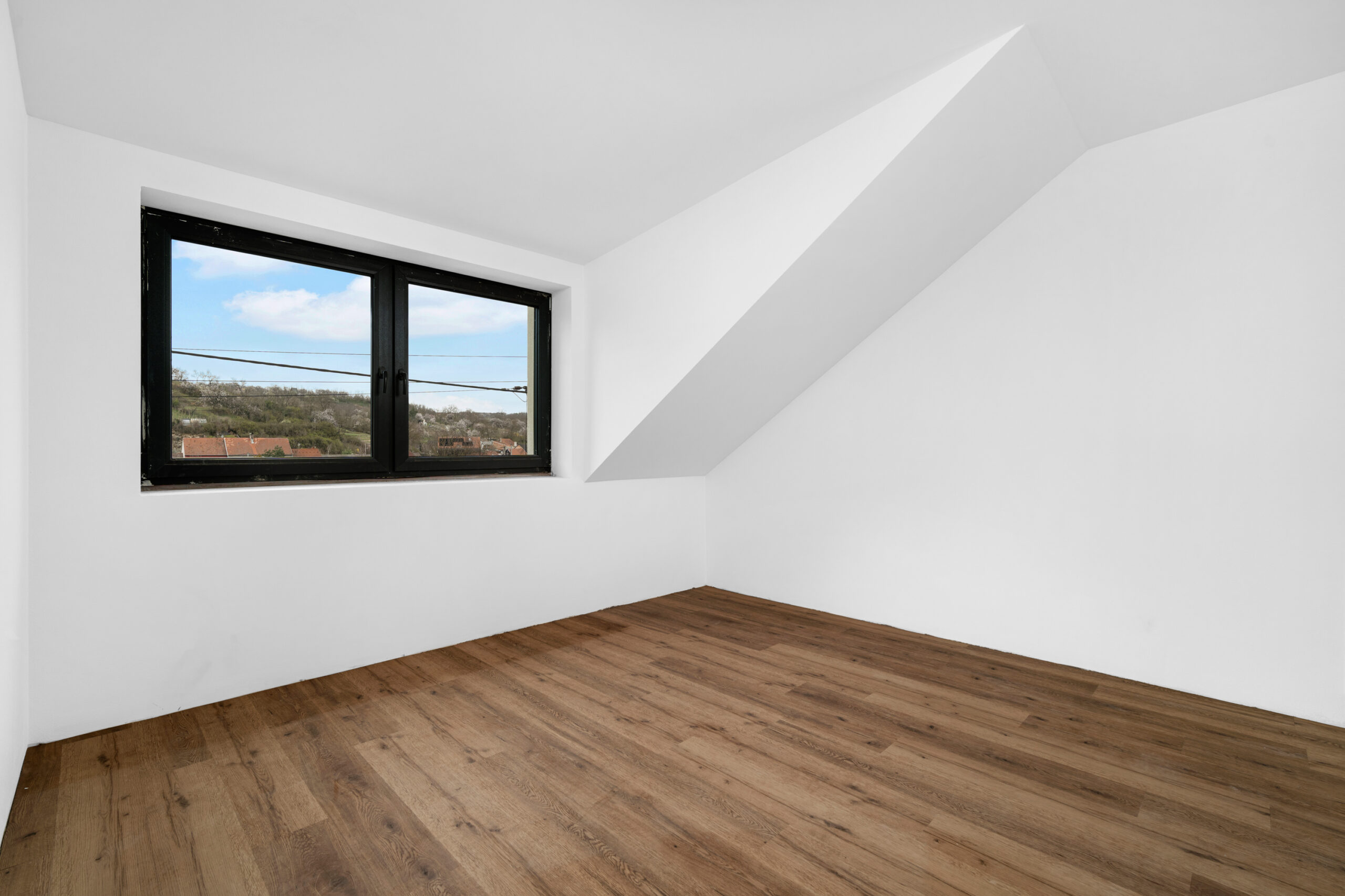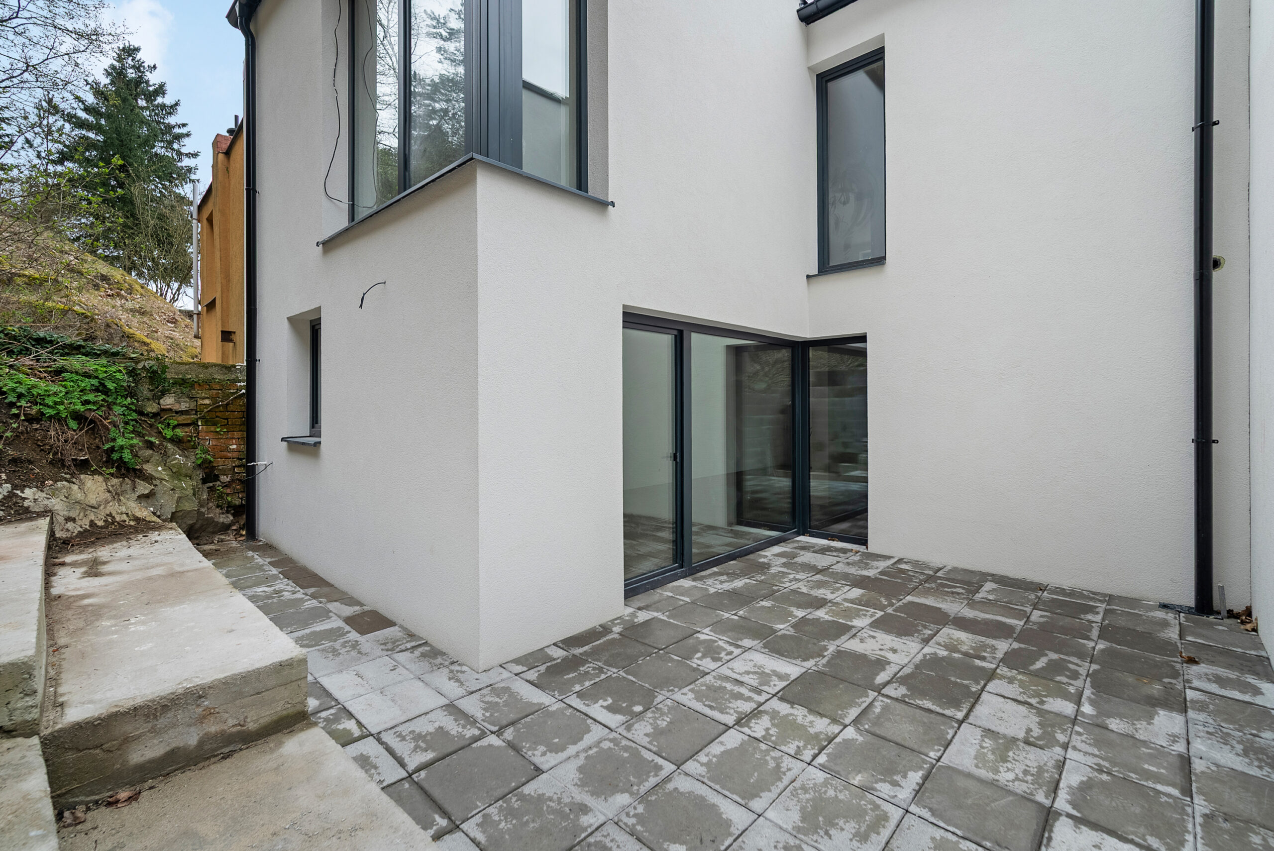 Nízkoenergetická novostavba 4+kk v obci Dolní Kounice na ulice Skalní. V projektové dokumentaci označen jako RD 1, při pohledu z ulice dům vpravo. LV 3223, k. ú. Dolní Kounice. Celková užitná plocha dle PD 179 m².